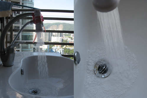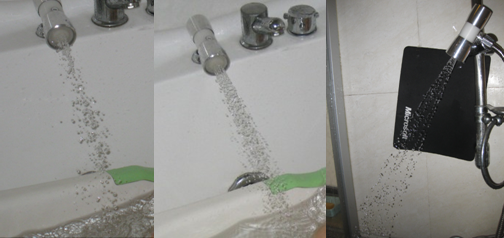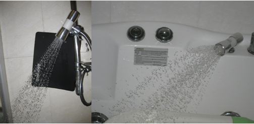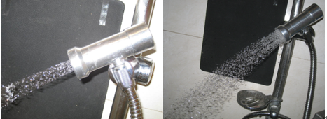 下圖為水龍頭流量流速可以調(diào)節(jié)在真空抽氣狀態(tài)下為花灑水形使用的實用效果,