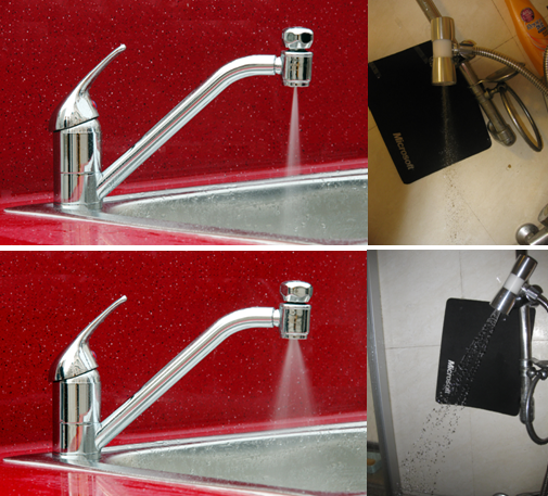 下圖為:發(fā)泡水嘴(左)與節(jié)水嘴(右)出水形態(tài)